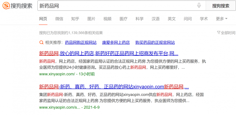 目前新藥品網(wǎng)在各大主流搜索的電腦端和手機(jī)端自然排名均為第1位,詳情請看各搜索排名截圖: