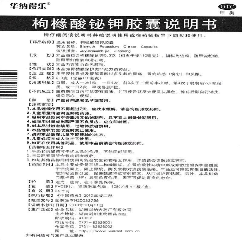 湖南華納大藥廠「枸櫞酸鉍鉀膠囊」首家通過一致性評價