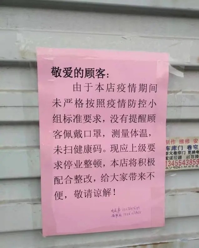 仔細一看,在門的正中間,還貼著說明,原來未按照疫情防控的需要,對進店購藥的顧客未嚴格執(zhí)行相關(guān)文件規(guī)定。