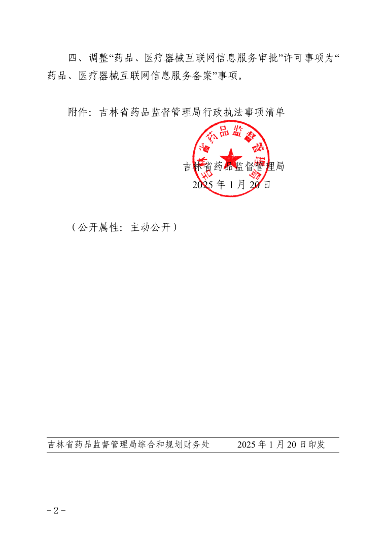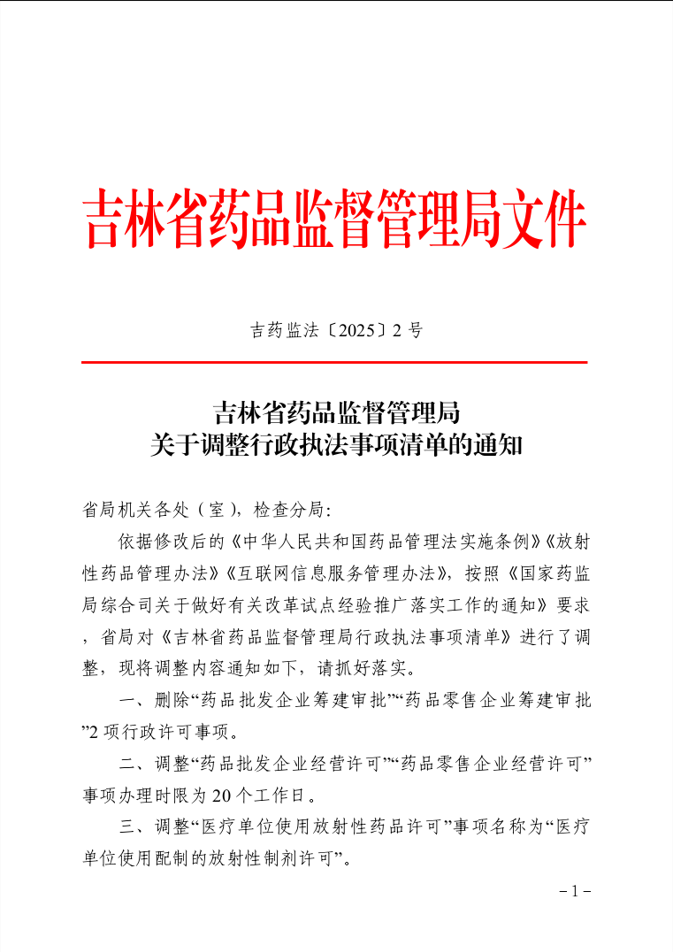 吉林省藥品監(jiān)督管理局關(guān)于調(diào)整行政執(zhí)法事項(xiàng)清單的通知