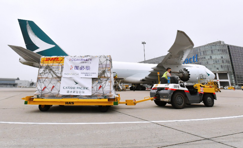 首批mRNA新冠疫苗復(fù)必泰TM(即BNT162b2,英文商品名:COMIRNATY®)將分別供應(yīng)香港及澳門地區(qū),供應(yīng)澳門的疫苗將從香港國際機(jī)場經(jīng)由港珠澳大橋轉(zhuǎn)運(yùn)至澳門。