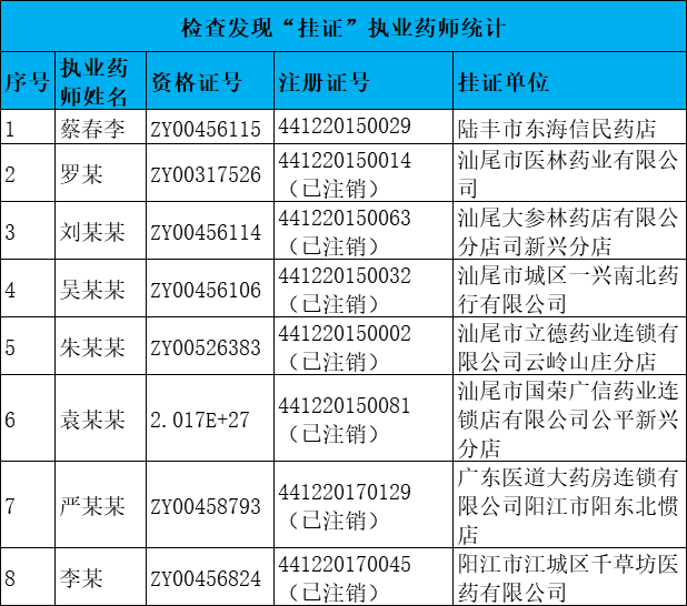 又有8名執(zhí)業(yè)藥師,因“掛證”被通報