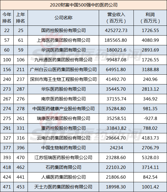 2020財(cái)富中國(guó)500強(qiáng)名單出爐 17家醫(yī)藥公司位列其中