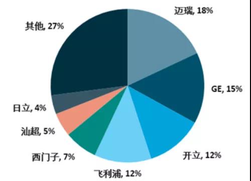 一類是具有雄厚的研發(fā)實力和制 造能力、憑借核心技術(shù)與先進產(chǎn)品占據(jù)市場主導(dǎo)地位的大型跨國公司,如通用電氣醫(yī)療、 飛利浦、西門子醫(yī)療等。此類競爭主體通常是行業(yè)標準的制定者,主要定位于高端市場。