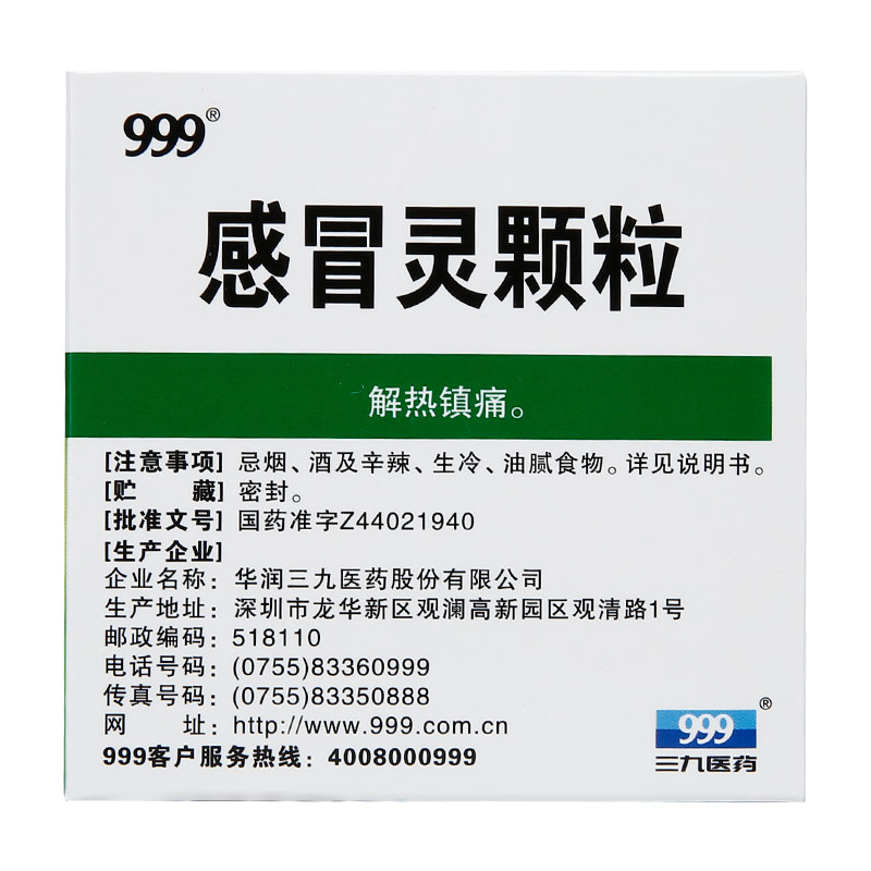 999 三九感冒靈顆粒 10g*9袋感冒頭痛發(fā)熱發(fā)燒鼻塞流鼻涕咽喉痛感冒藥 【約3天用量】一盒裝