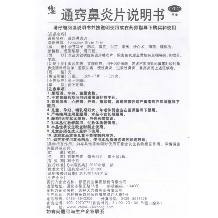 修正 通竅鼻炎片 36片 散風(fēng)固表、宣肺通竅。用于慢性鼻炎、過敏性鼻炎、鼻竇炎。