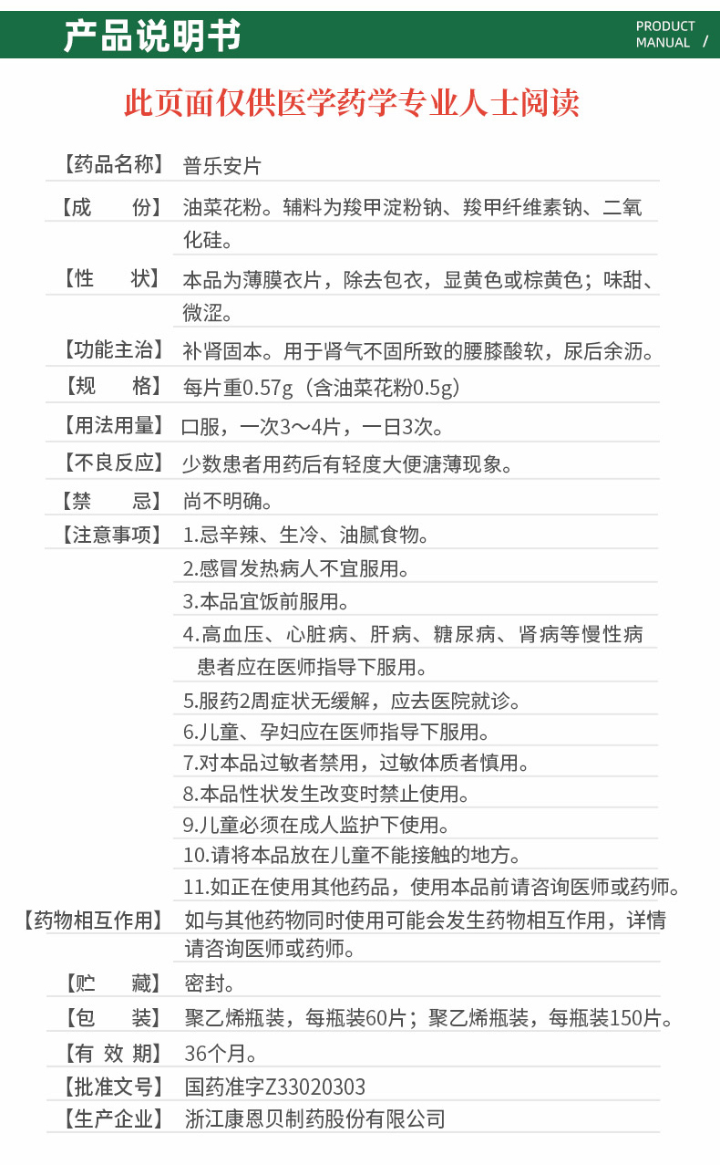 前列康 康恩貝 普樂(lè)安膠囊 0.375g*60片 1盒 補(bǔ)腎固本腰膝酸軟