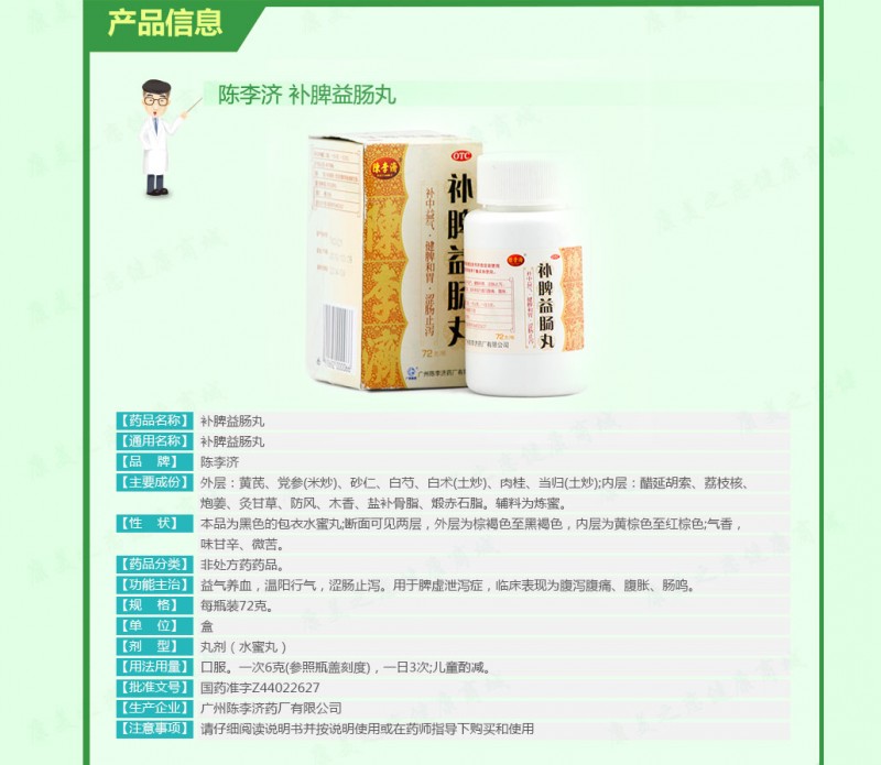 補(bǔ)中益氣,健脾和胃,澀腸止瀉。用于脾虛泄瀉癥,臨床表現(xiàn)為腹瀉腹痛、腹脹、腸鳴。