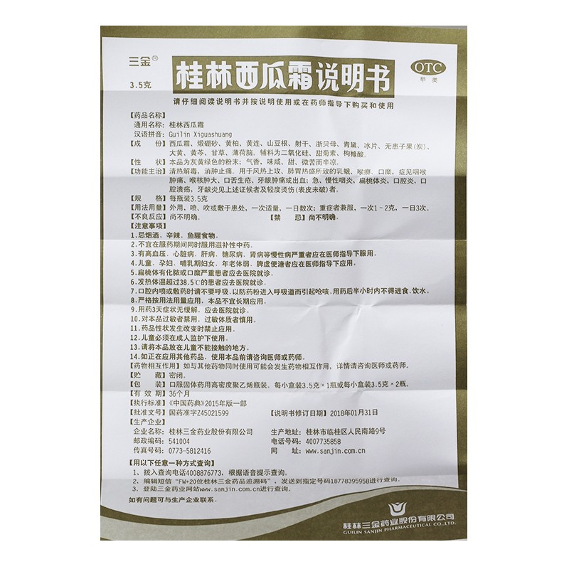 三金 桂林西瓜霜噴劑 3.5g/瓶口腔潰瘍噴劑 咽痛咽喉腫痛 口舌生瘡 急慢性咽炎