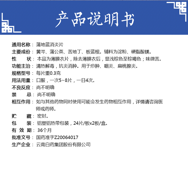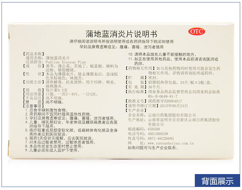 云南白藥 云豐 蒲地藍(lán)消炎片 48片(消腫 咽炎 扁桃腺炎)