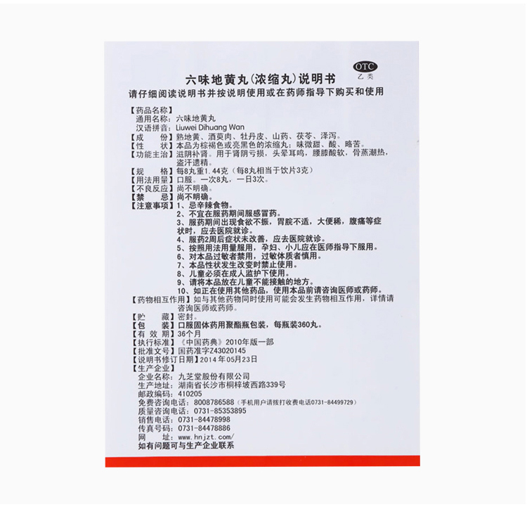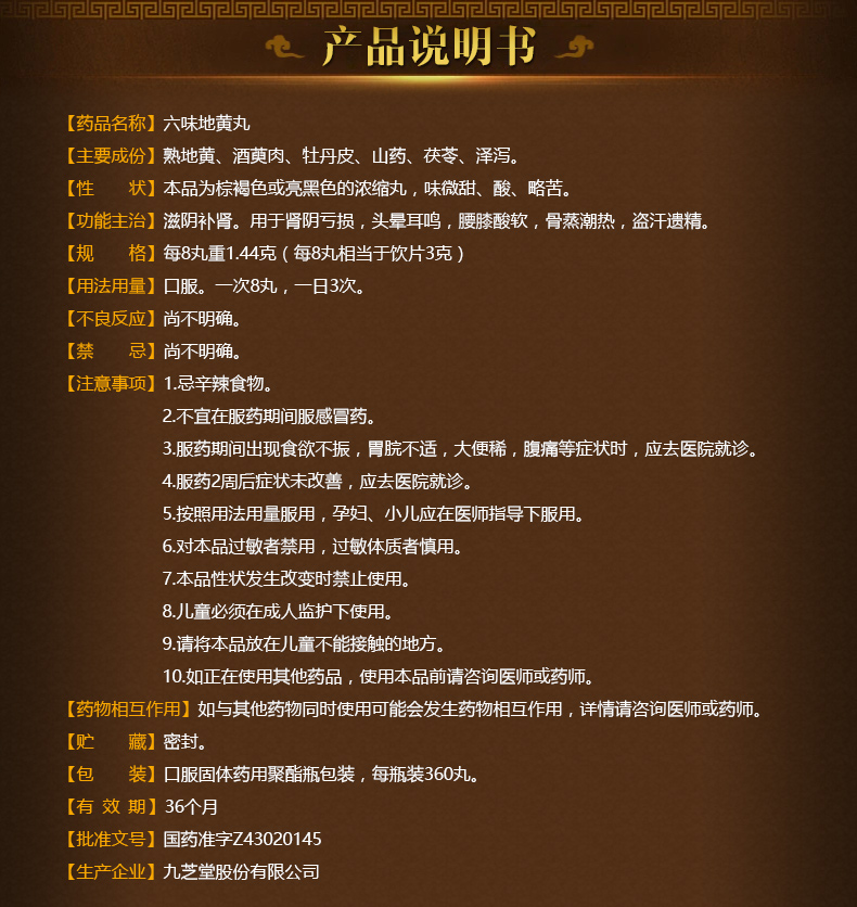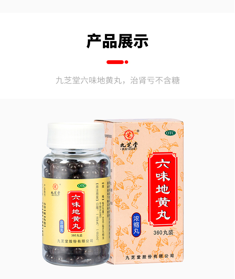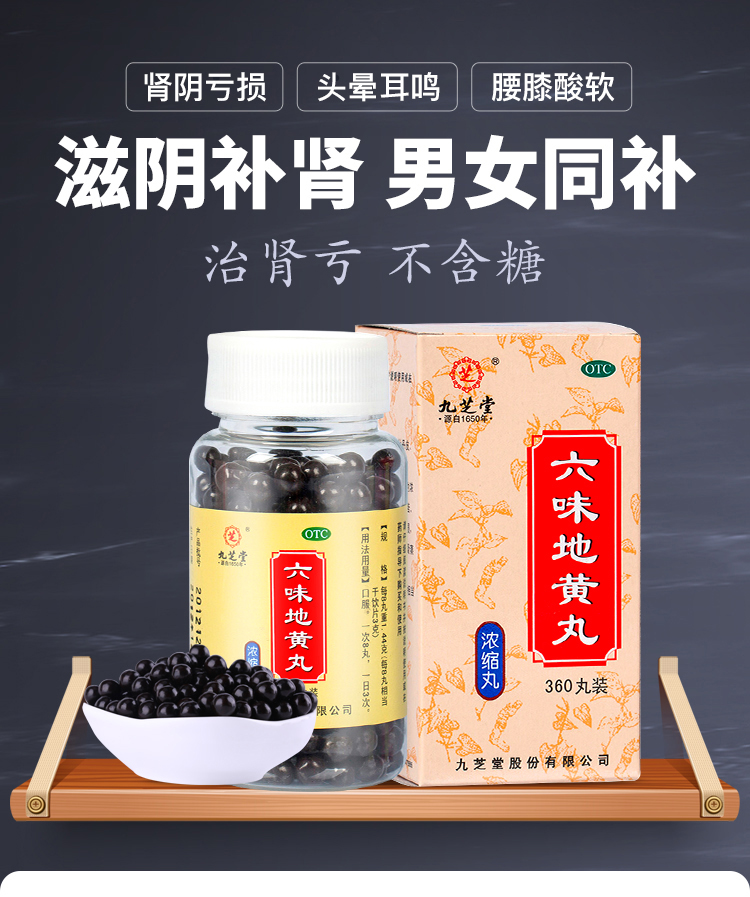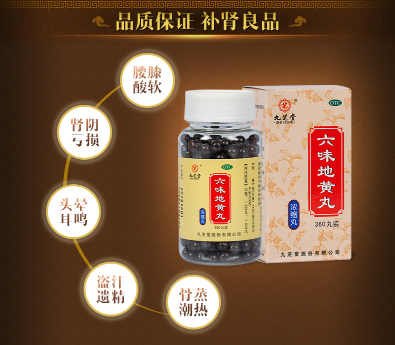 九芝堂六味地黃丸(濃縮丸)360丸*1瓶 滋陰補(bǔ)腎 用于腎陰虧損頭暈耳鳴腰膝酸軟盜汗遺精