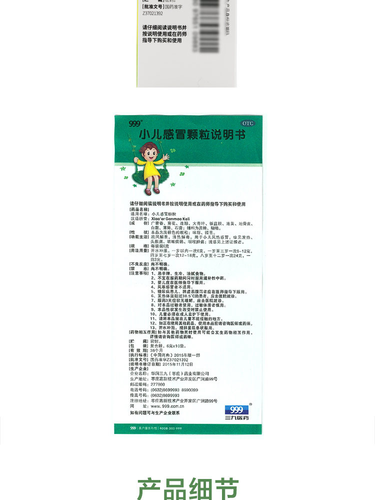 999小兒感冒顆粒6g*10袋三九兒童風熱感冒咽喉腫痛咳嗽發(fā)熱頭痛