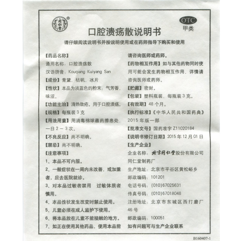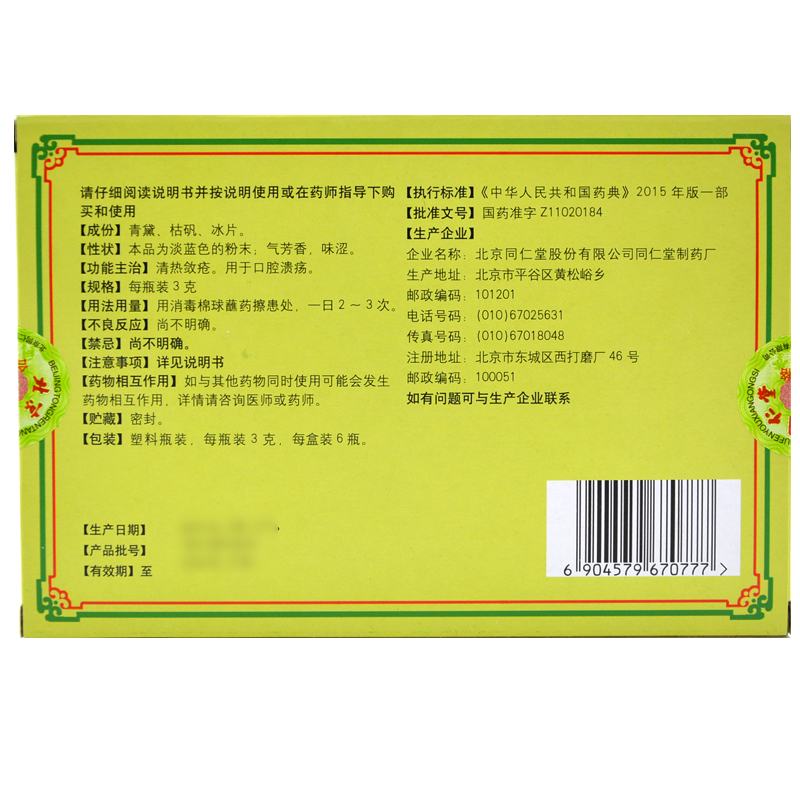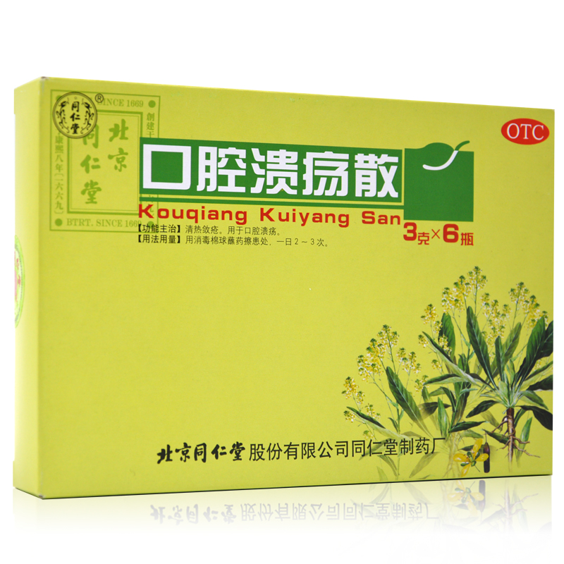 北京 同仁堂口腔潰瘍散 3g*6瓶 清熱斂瘡 用于口腔潰瘍