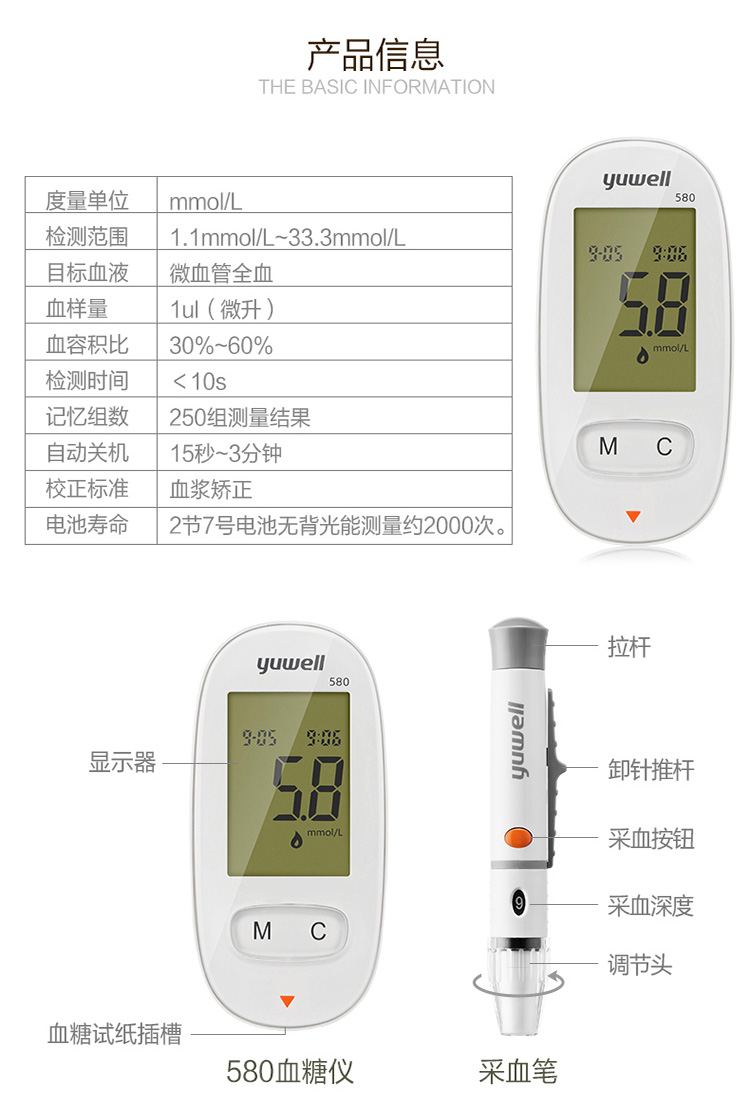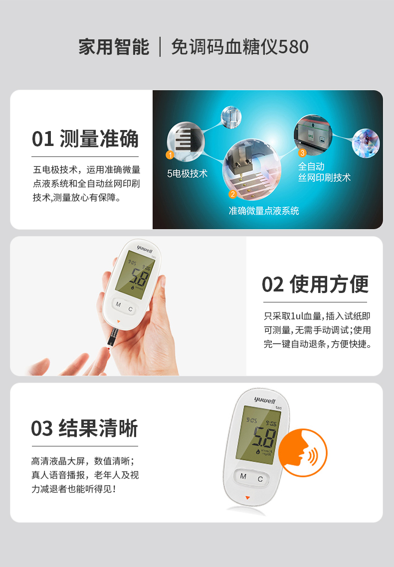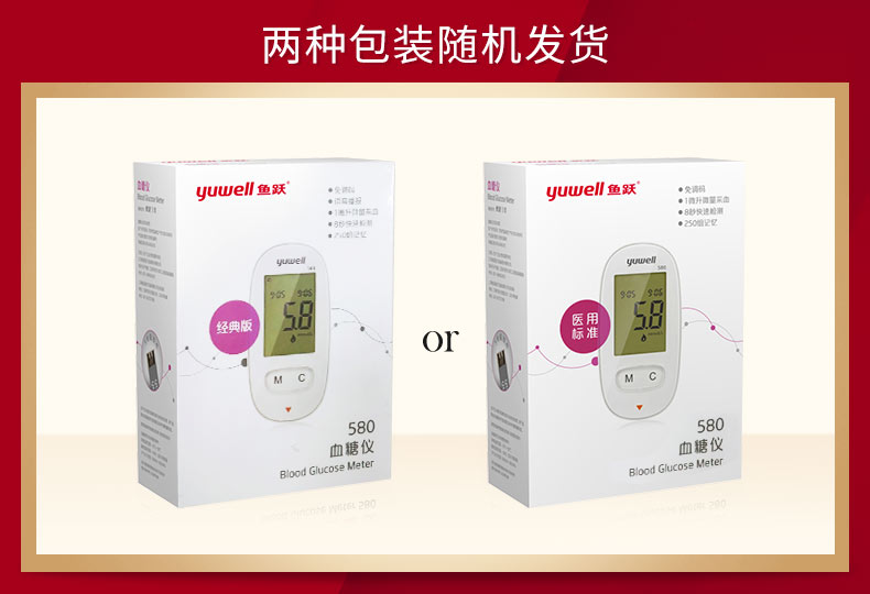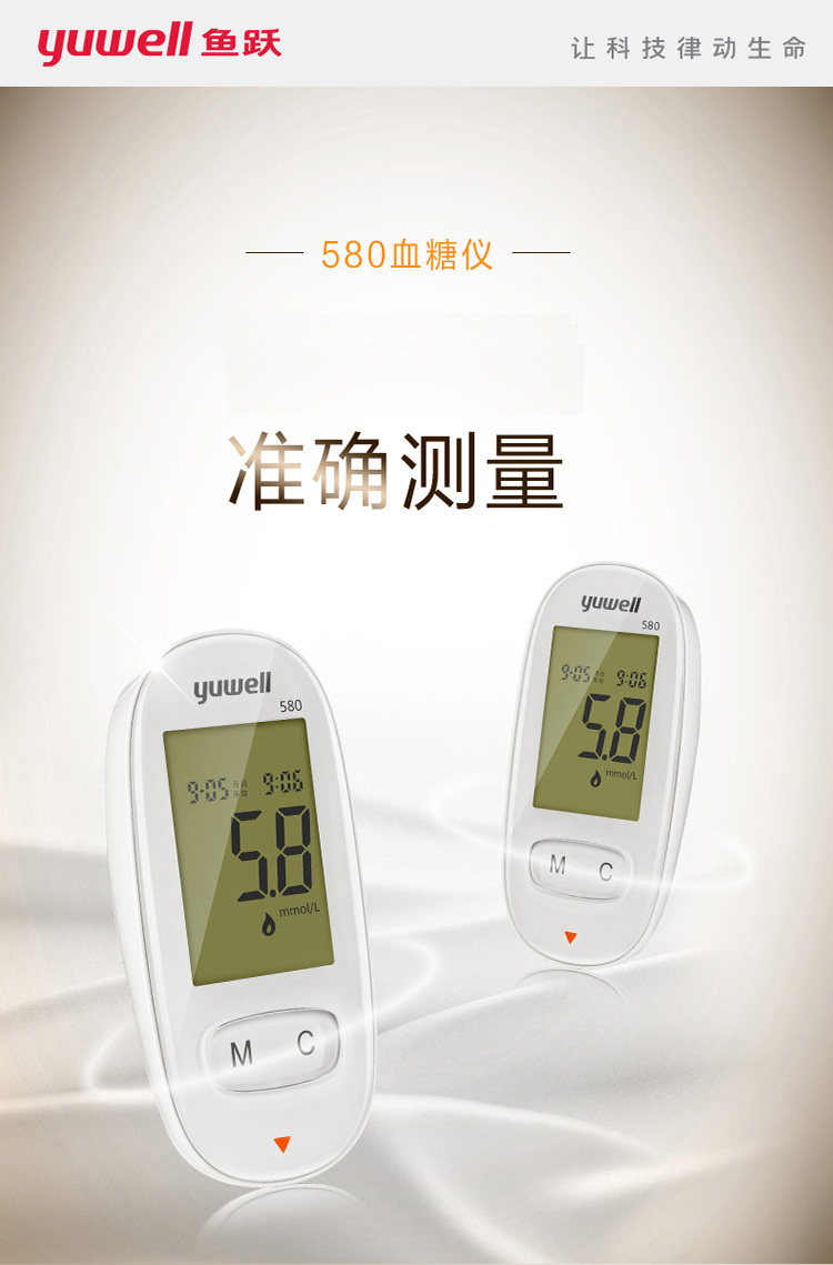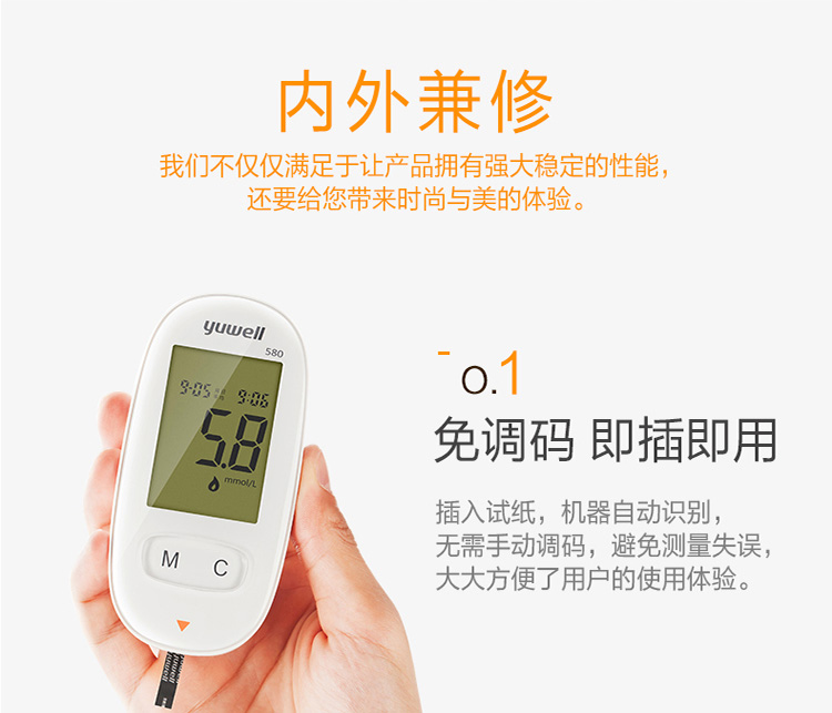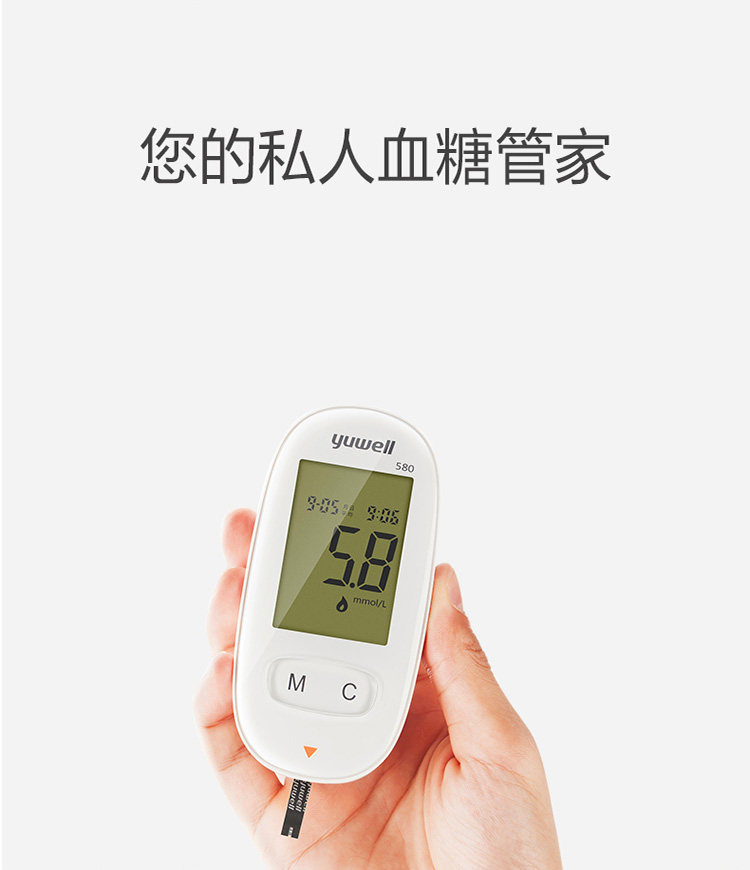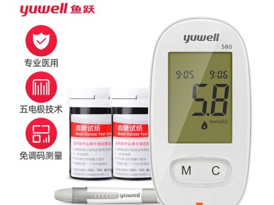 魚躍(YUWELL)血糖儀家用智能免調碼580血糖測試儀100支瓶裝試紙試條醫(yī)用級精準血糖儀 注冊證號:蘇械注準20162400064