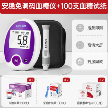三諾血糖儀 全自動安穩(wěn)免調(diào)碼家用100支套裝