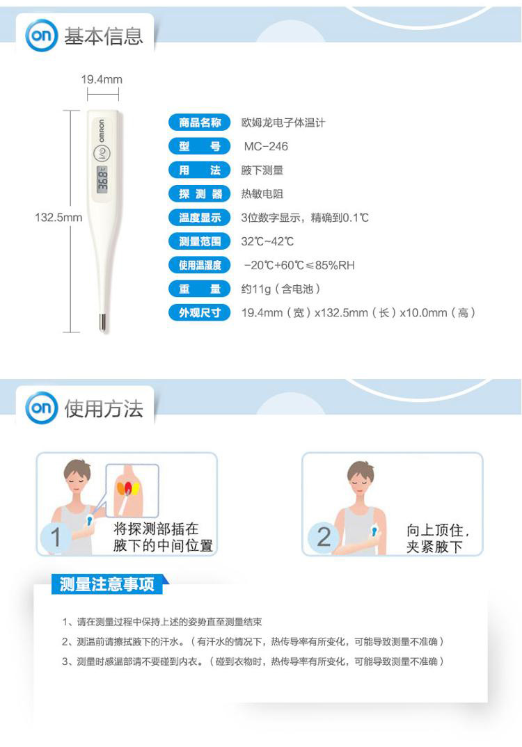 應(yīng)用于嬰兒、成人腋下體溫進(jìn)精準(zhǔn)測量,蜂鳴提示、可水洗干凈衛(wèi)生,可查看前次記憶值